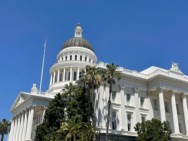 California State Capitol is the seat of the California state government, located in Sacramento, the state capital of California. The building houses the chambers of the California State Legislature, made up of the Assembly and the Senate, along with the office of the governor of California. The Neoclassical structure, designed by Reuben S. Clark, was completed between 1861 and 1874. Located at the west end of Capitol Park and the east end of the Capitol Mall, the building was added to the National Register of Historic Places in 1973. The California State Capitol Museum is housed on the grounds of the capitol.